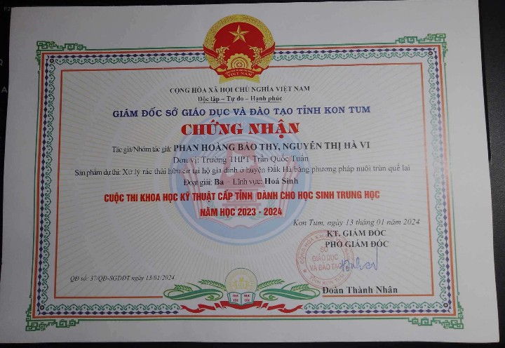 5. Đạt thành tích: giải Ba thuộc lĩnh vực Hoá - Sinh.