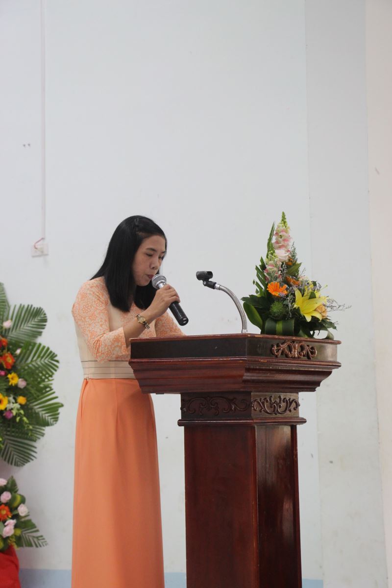 Sau chương trình văn nghệ sôi nổi, cô Lê Thị Thứ - Phó Hiệu trưởng nhà trường đã đọc thư của Chủ tịch nước gửi các nhà giáo, cán bộ quản lý giáo dục và các em HS, sinh viên nhân dịp khai giảng năm học mới 2019 - 2020.
