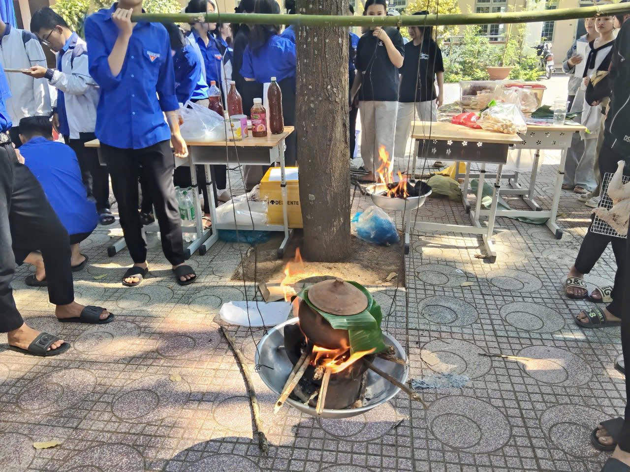 Điểm nhấn không thể thiếu của ngày hội chính là phần thi “Nấu cơm – Nướng gà không chạm đất” – một thử thách vừa khó vừa vui, đòi hỏi sự khéo léo, linh hoạt và tinh thần đồng đội cao. Những tình huống “dở khóc dở cười” đã tạo nên bầu không khí náo nhiệt, tiếng cười rộn ràng khắp sân trường, để lại nhiều kỷ niệm đáng nhớ cho mỗi học sinh tham gia.