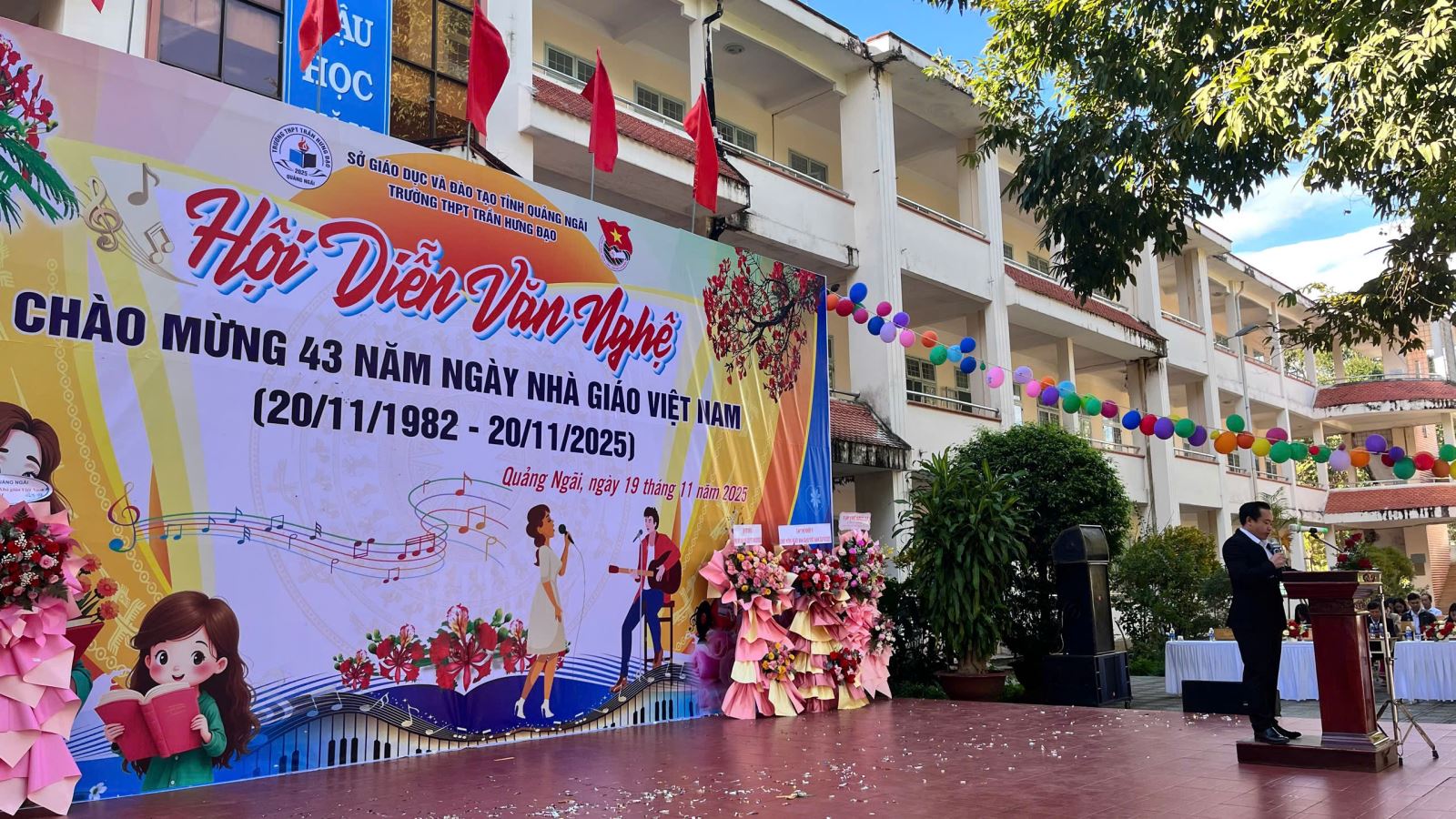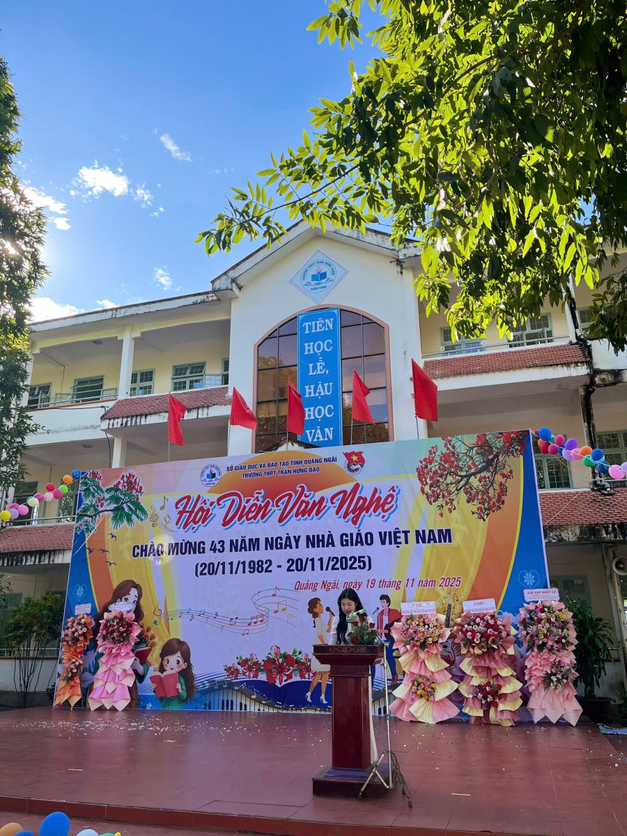 Sáng 20/11, chương trình Tọa đàm chào mừng ngày Nhà giáo Việt Nam được tổ chức trang trọng. Mở đầu buổi lễ là những tiết mục văn nghệ đầy cảm xúc do học sinh biểu diễn, gửi gắm lòng biết ơn sâu sắc đến quý thầy cô. Đại diện học sinh toàn trường, em Trần Nguyễn Huyền Anh – lớp 11B6 – đã phát biểu cảm nghĩ đầy chân thành, thay lời tri ân của tất cả thế hệ học trò đang học tập dưới mái trường Trần Hưng Đạo. Tiếp đó, học sinh các khối đã dâng tặng những lẵng hoa tươi thắm đến quý thầy cô, thể hiện sự kính trọng và lòng biết ơn vô hạn đối với những người đã tận tâm dìu dắt, truyền lửa tri thức.