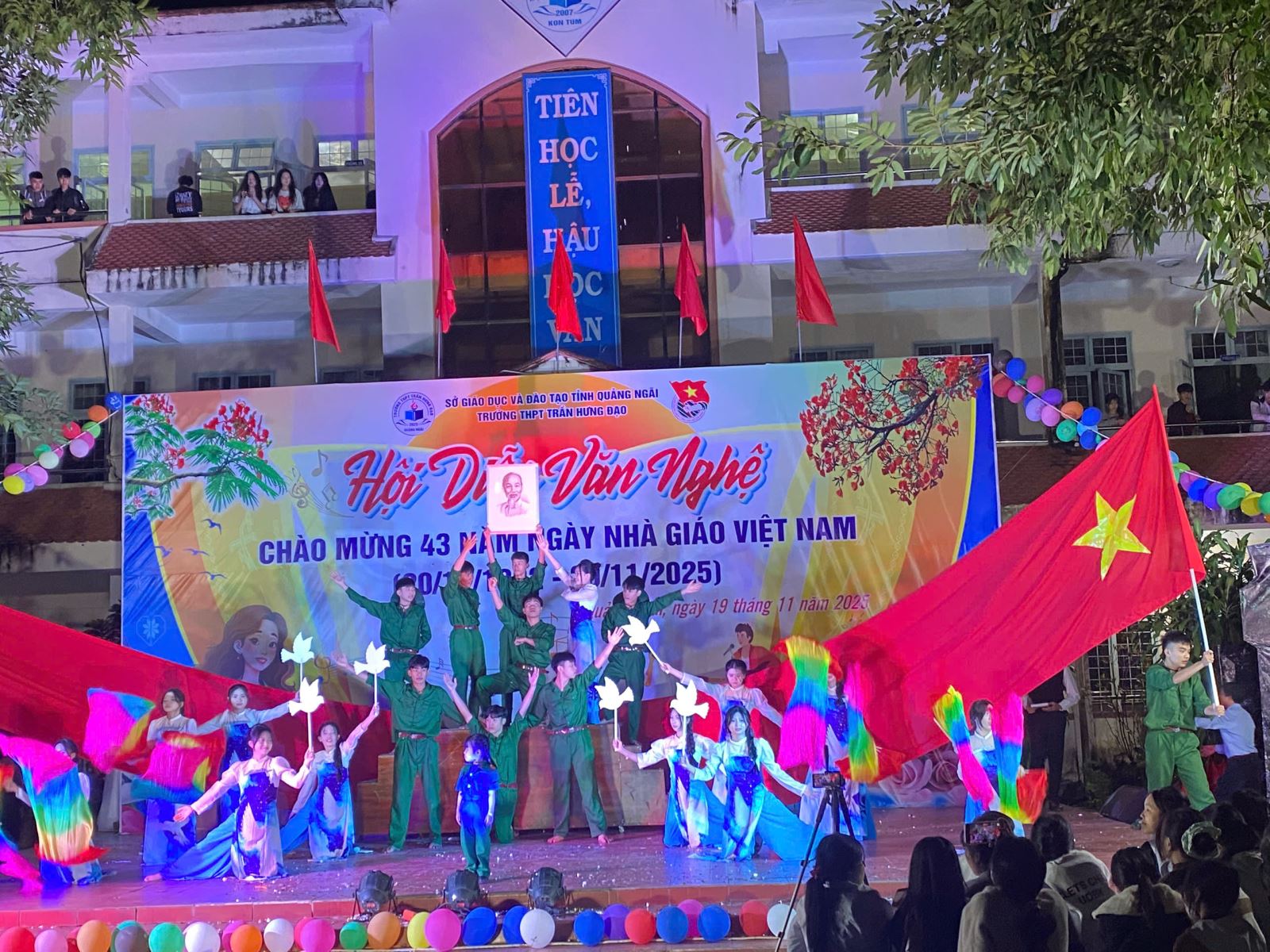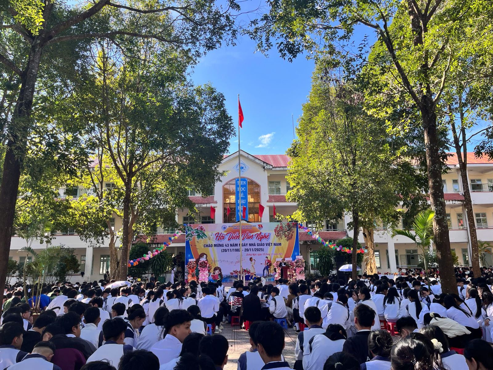Tối 19/11/2025, tại sân khấu ngoài trời, Đoàn trường đã tổ chức Hội diễn văn nghệ chào mừng Ngày Nhà giáo Việt Nam. Chương trình quy tụ những tiết mục xuất sắc nhất từ Hội thi “Tìm kiếm tài năng học đường” năm học 2025–2026. Các tiết mục ca hát, múa, nhảy hiện đại được dàn dựng công phu, mang lại không khí sôi động và đầy cảm xúc. Trong khuôn khổ chương trình, nhà trường cũng tổ chức gây quỹ “Tiếp sức đến trường” nhằm hỗ trợ các học sinh có hoàn cảnh khó khăn, lan tỏa tinh thần sẻ chia và yêu thương trong cộng đồng học đường.