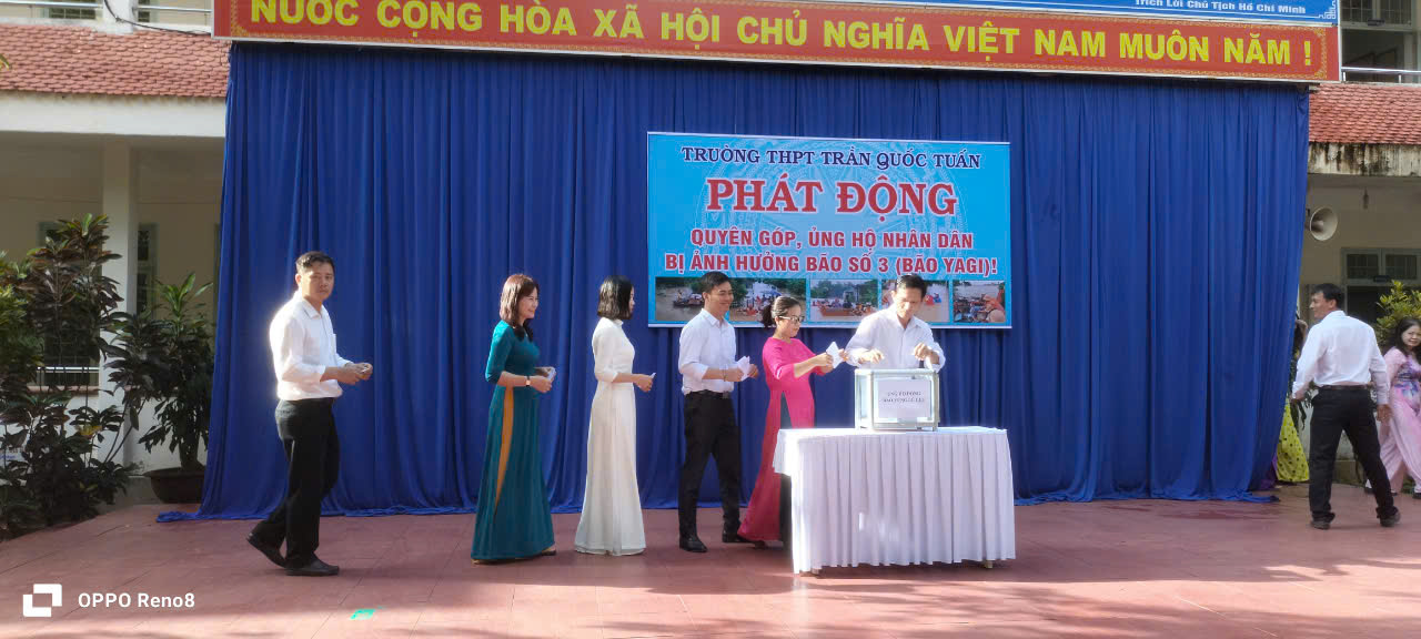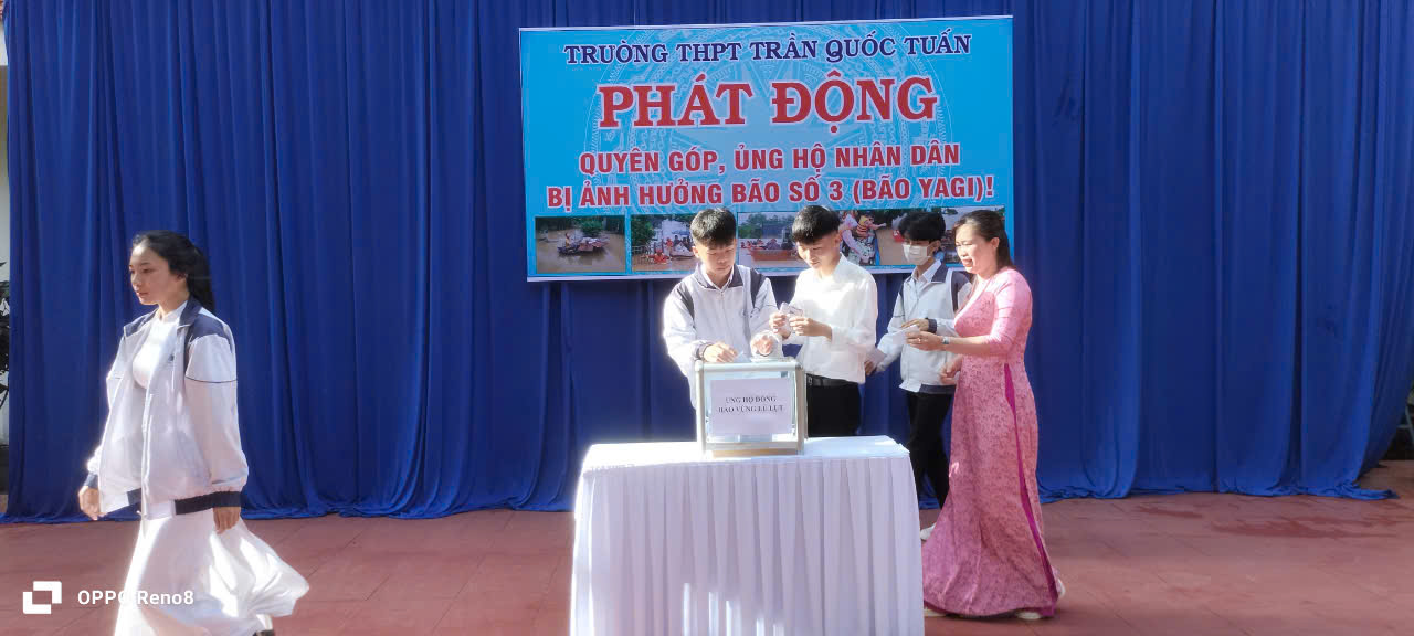 Hưởng ứng Thư kêu gọi của Tỉnh ủy – HĐND – UBND – UBMTTQ VN tỉnh Kon Tum, thực hiện Công văn số 2006/SGDĐT-VP ngày 12/9/2024 của Sở GD&ĐT Kon Tum về việc phát động ủng hộ đồng bào các tỉnh phía Bắc bị thiệt hại do bão số 3 gây ra, với tinh thần “Trường THPT Trần Quốc Tuấn vì Miền Bắc thân yêu, Trường THPT Trần Quốc Tuấn cùng cả nước”, nhà trường đã kêu gọi CB, GV, NV, và HS toàn trường phát huy truyền thống đoàn kết, tương thân tương ái “Thương người như thể thương thân”, "Lá lành đùm lá rách", với tinh thần “Nhường cơm sẻ áo” cùng chung tay chia sẻ, ủng hộ ND vùng bị thiên tai do bão lũ gây ra.